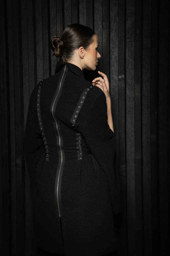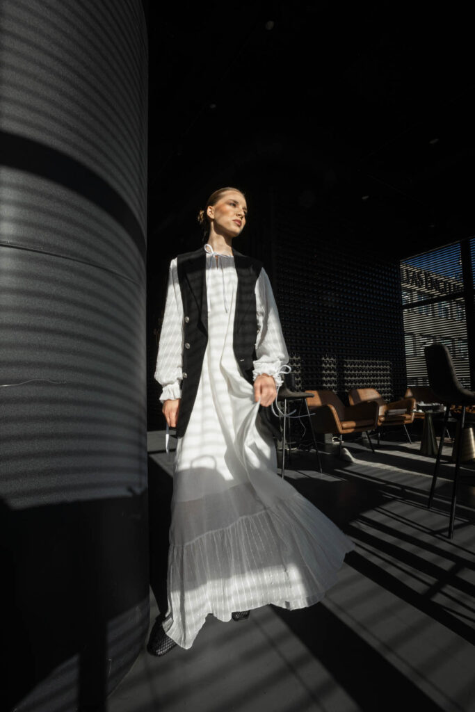 Įamžinti savo kurtą mini etiudą ji pasirinko erdvę, garsėjančią savo išskirtine atmosfera ir gebėjimu prisitaikyti prie skirtingų konceptų. Šį kartą ji virto kūrybine laboratorija – vieta, kur tarp industrinio paveldo ir šiuolaikinės estetikos gimė naujas požiūris į drabužį bei jo vertę, o čia įvykęs meninis projektas tapo savita tvarumo manifestacija.