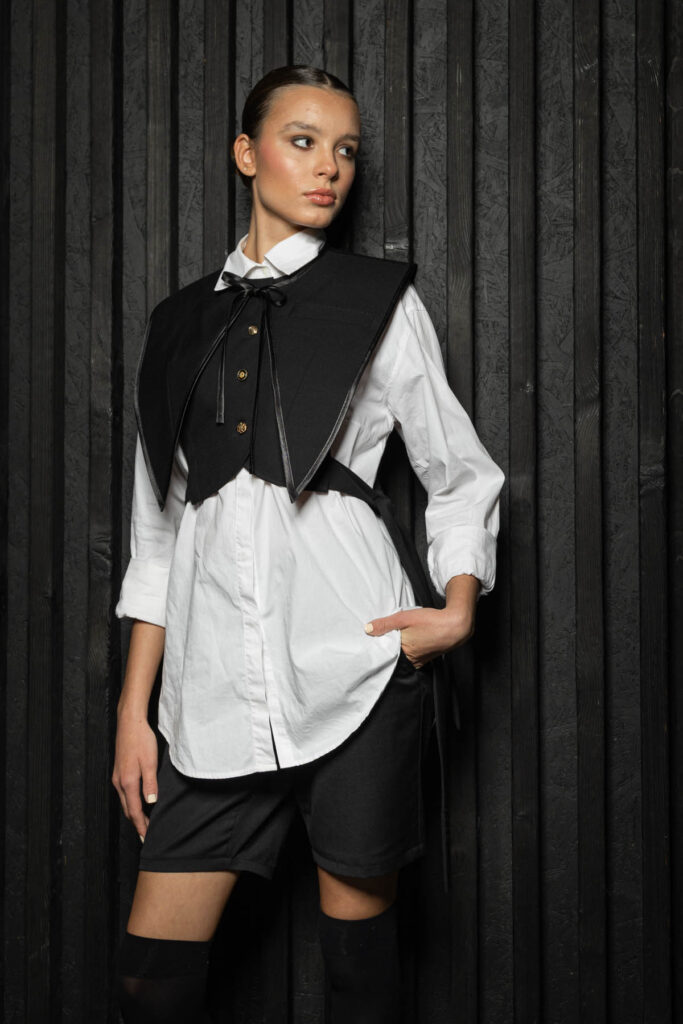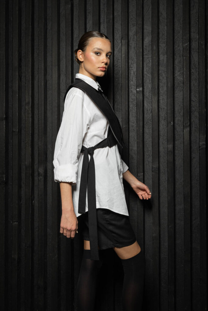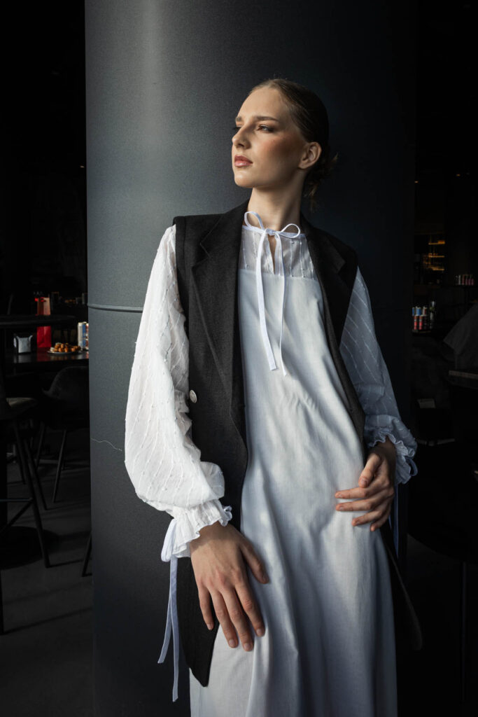 „Savo kūrinius kuriu mažais kiekiais – lėtai ir atsakingai. Galvoju apie tai, kaip drabužį galima dėvėti įvairiai, kad jis prisitaikytų prie kūno pokyčių ir nereikėtų jo atsisakyti, kai pasikeičia dydis. Kuriu taip, kad žmogus galėtų pats jį prižiūrėti namuose,“ – sako Olesia.