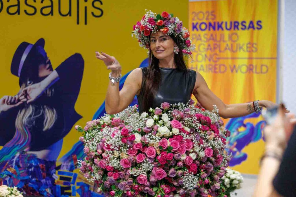 Floristo Modesto Vasiliausko kūrinys – suknelė iš 1633 rožių taps nauju Lietuvos rekordu. Jos kūrimą parodoje „Moters pasaulis“ fiksavo už tai atsakingi asmenys.