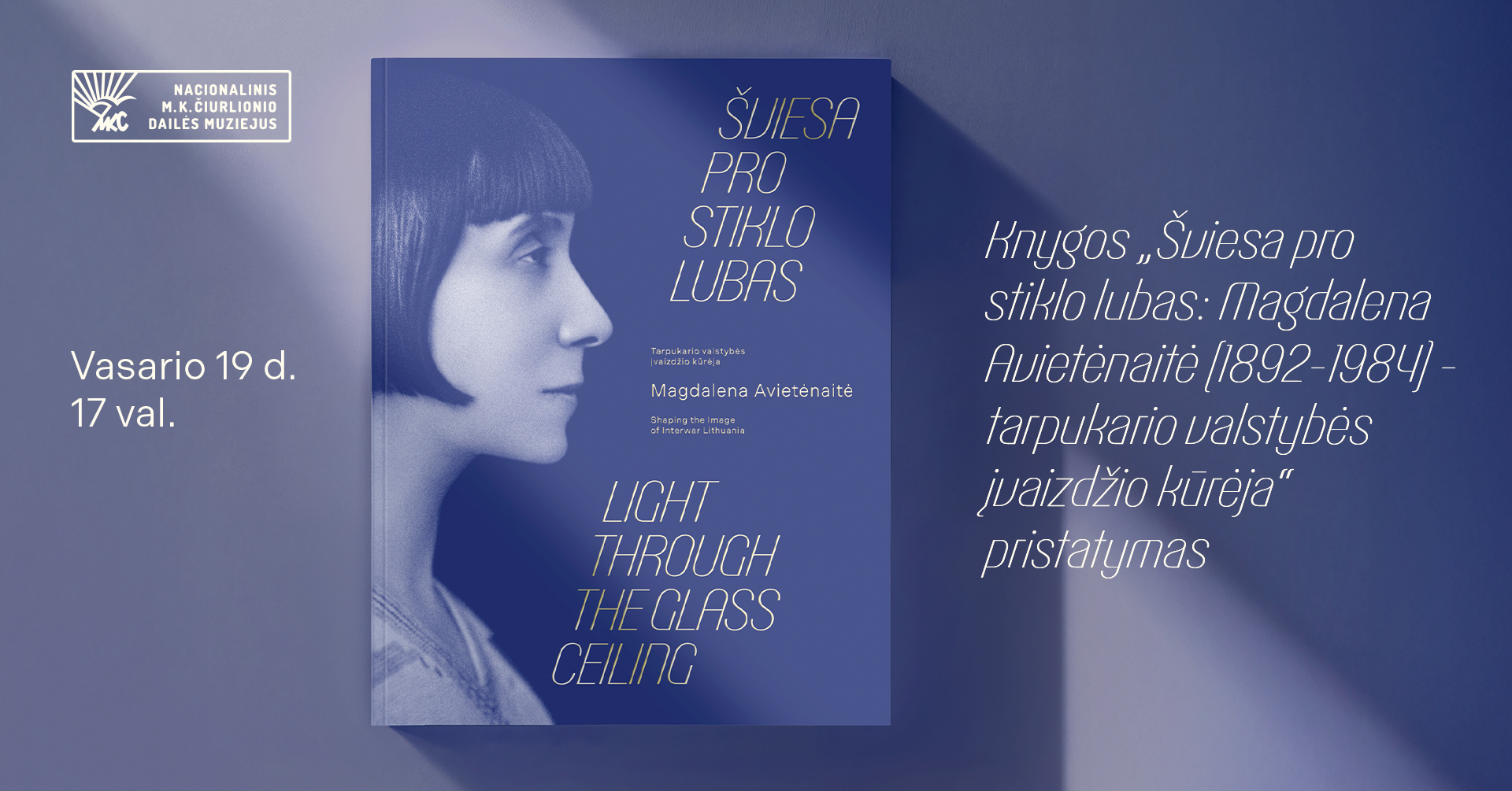 Vasario 19 d., ketvirtadienį, 17 val. Nacionalinis M. K. Čiurlionio dailės muziejus (V. Putvinskio g. 55, Kaune) kviečia į knygos „Šviesa pro stiklo lubas: Magdalena Avietėnaitė (1892–1984) – tarpukario valstybės įvaizdžio kūrėja“ pristatymą.