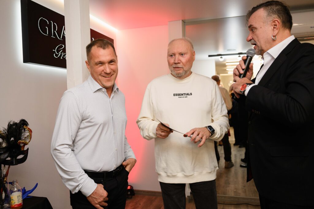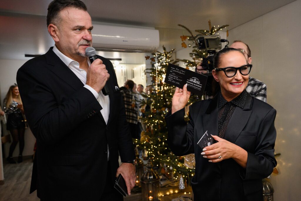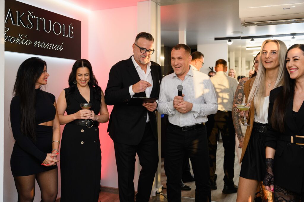 „Pradedame šventinių renginių maratoną, bene pirmieji Kaune įžiebdami eglutę vietoje, kur viskas skirta grožiui ir kur nestinga šilumos“, – taip būrį žinomų žmonių salone „Grakštuolė“ pasveikino renginių vedėjas Dainius Martinaitis.