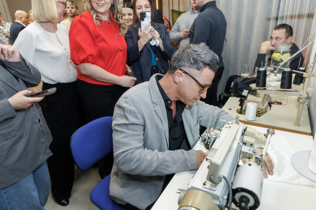 Jis, kaip ir kiti šventės svečiai, renginyje turėjo galimybę bent trumpam prisiliesti prie siuvimo meno bei išmėginti modernų įrenginį, kurio dėka gimsta kokybiškiausios užuolaidos, dekoratyvinės pagalvėlės, kosmetinės, lovatiesės, kiti individualūs interjero sprendimai.