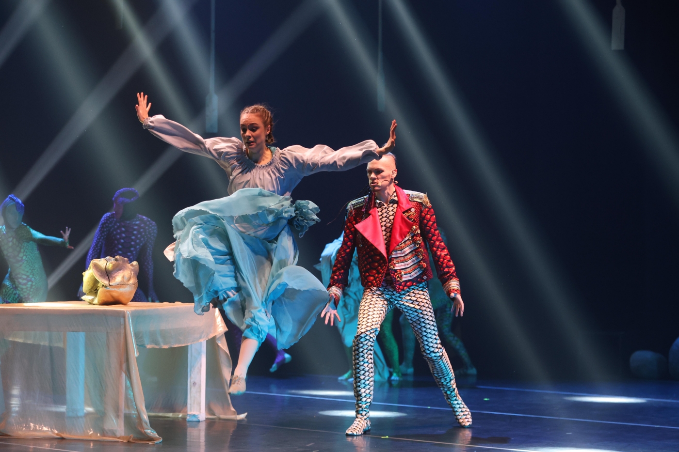 Už šį įspūdį reikėtų padėkoti miuziklo kostiumų kūrėjai Vidai Simanavičiūtei, kurios dėka Žalčio palyda ir visas vandenų pasaulis tokie magiški, teatrališki ir žvilgsnį kaustantys.